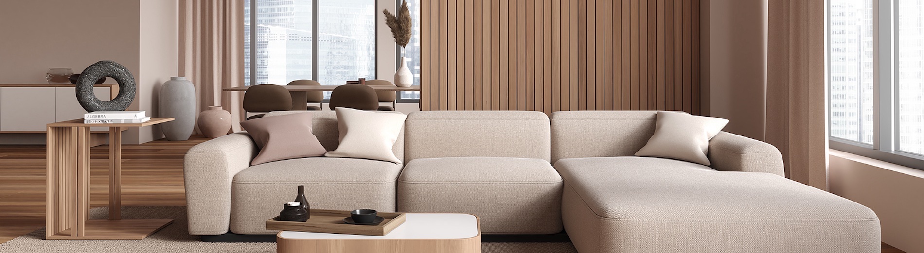 Alcove Studio - L-shaped living room with alcove used for sleeping or dining (or enclosed to become a small separate room), kitchen, bath.